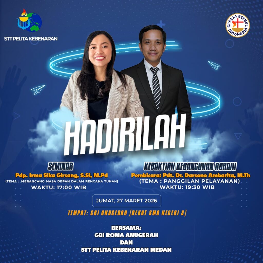 Dalam rangka pelaksanaan Pengabdian kepada Masyarakat sebagai salah satu wujud Tri Dharma Perguruan Tinggi, STT Pelita Kebenaran bekerja sama dengan GBI Roma Anugerah Siborong-borong menyelenggarakan kegiatan Seminar dan Kebaktian Kebangunan Rohani pada hari Jumat, 27 Maret 2026.